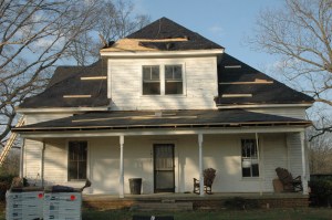 Spring is officially upon up us and it showed today. The wind was gusting up to 30 MPH so the roofers couldn’t finish the shingles. I’m sure they’ll finish tomorrow morning. Meanwhile, Scott and his crew have finished the the foundation and brick facade for the new addition.